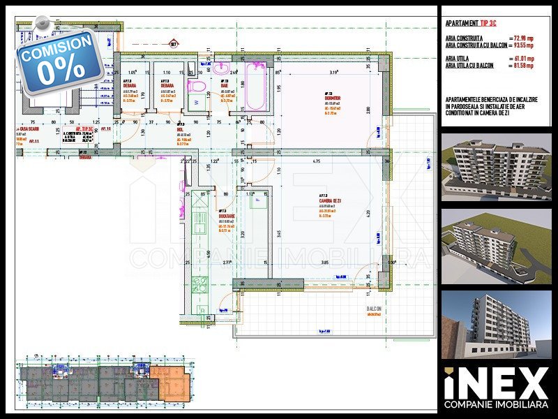 Va oferim spre vanzare un apartament cu 2 camere la etajul 4, in incinta unui bloc fond nou, ce are un regim de inaltime 2D+P+6E, situat în partea de Nord a orasului. Apartamentul are o suprafata utila de 81,58 mp si este astfel compartimentat : - living, dormitor, bucatarie, hol, baie, debara, camara. - balcon de 20 mp. Locuinta se preda complet finisata, cu gresie, faianta, parchet, tamplarie pvc, usi de interior, bai complet echipate, centrala proprie. Apartamentul beneficiaza de incalzire prin pardoseala si instalatie de aer conditionat in camera de zi. Blocul se situeaza intr-o zona buna, foarte aproape de centrul orasului, de mijloace de transport, magazine, scoli, gradinite, banci si parcuri. Va asteptam la vizionare La achiziţionarea imobilului cu credit Prima Casă/imobiliar/ipotecar, primiţi asistentă la realizarea dosarului bancar. Pentru mai multe detalii despre această proprietate sau despre alte oferte similare în zonă, ne puteţi contacta. 0% comision | DA! Nu percepem comision la cumpărarea acestei proprietăţi!
