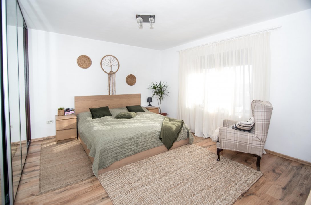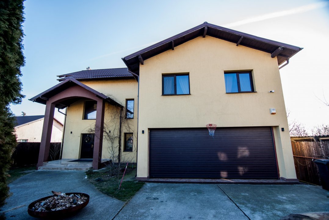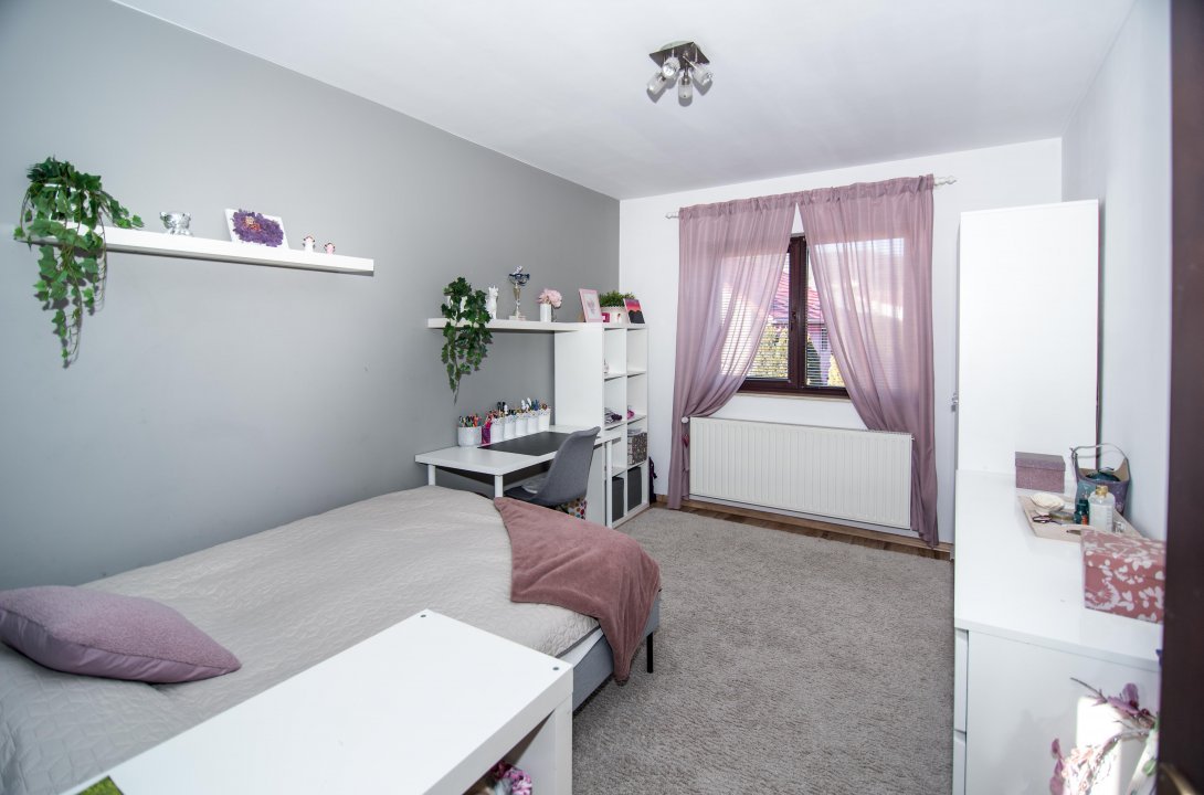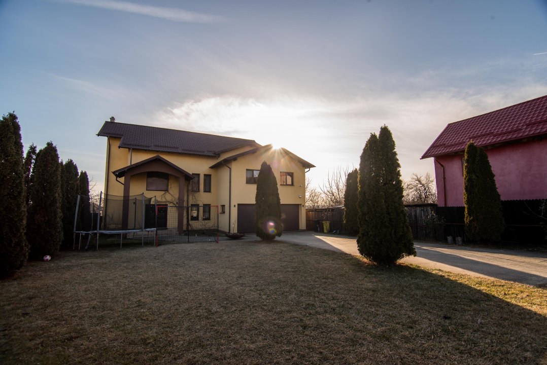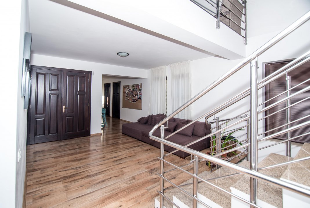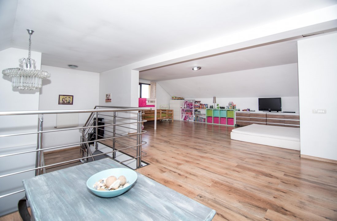 CASA dvs de vis sau AFACEREA DUMNEAVOASTRA de succes Aceasta frumoasa si generoasa casa cu o suprafata de 440 mp utili si 1150 mp teren poate sa devina casa dvs de vis sau afacerea dvs de succes fiind pretabila pentru: pensiune, gradinita, after - school, camin seniori, centru medical, sediu firma - birouri. Cu o curte luminata, spatioasa si amenajata cu alei largi delimtate de frumoasele plante de tuia, magnolii si ciresi japonezi, aceasta superba vila va invita sa patrundeti in interior, prin usa din lemn masiv Foresta, sa va bucurati de intreg confortul pe care il ofera spatiile deosebit de generoase, decorate modern, cu privire de designer si buget generos, cu tamplarie din lemn masiv, cu incalzire prin pardoseala la parter si un loc perfect pentru petrecerile cu familia si prietenii. Compartimentarea interioara: - PARTER: living/lounge spatios cu bucatarie open - space, dinning, semineu, o camera deschisa, baie, iar garajul a fost transformat intr-un spatiu -bucatarie. - ETAJUL 1: 4 dormitoare dintre care 2 matrimoniale, cu baie proprie, un hol spatios si baie, dressing. - MANSARDA: 2 dormitoare, baie si spatiu open space generos, o zona ideala de relaxare, sala de sport sau loc de joaca pentru copii. Casa se vinde mobilata și utilata, dispune de centrala termica, iar la parter de incalzire prin pardoseala, ferestre din PVC cu geam termopan si beneficiaza de toate utilitatile. Casa este construita in 2009, din caramida porotherm de 37.5, cu termosistem de 5 cm si cu acoperis din tabla profilata Lindab. Dispune de camere video si sistem de alarma. Se poate povesti indelung despre detaliile decorarii si amenajarii acestei minunate case si tot ar mai ramane probabil lucruri nespuse, de aceea va invitam sa o vizionati!