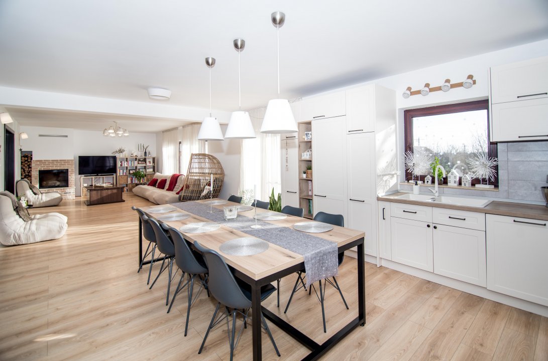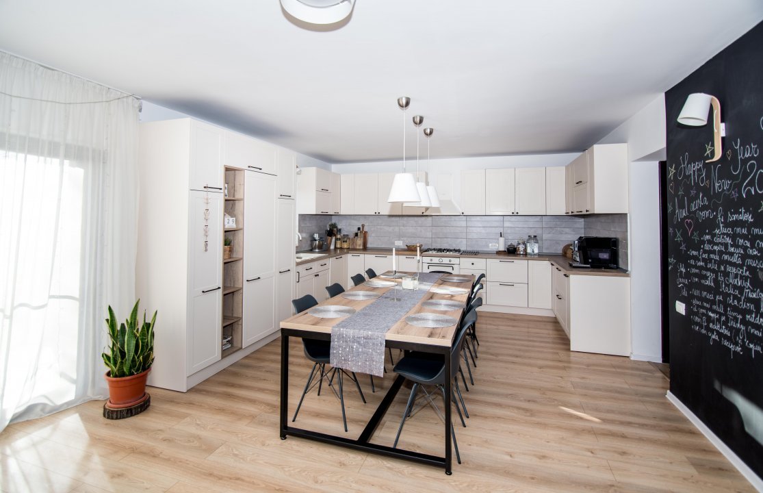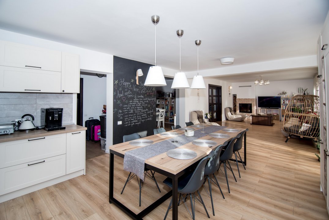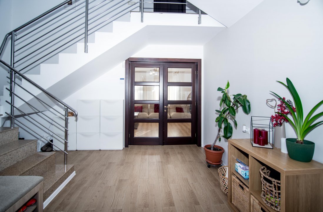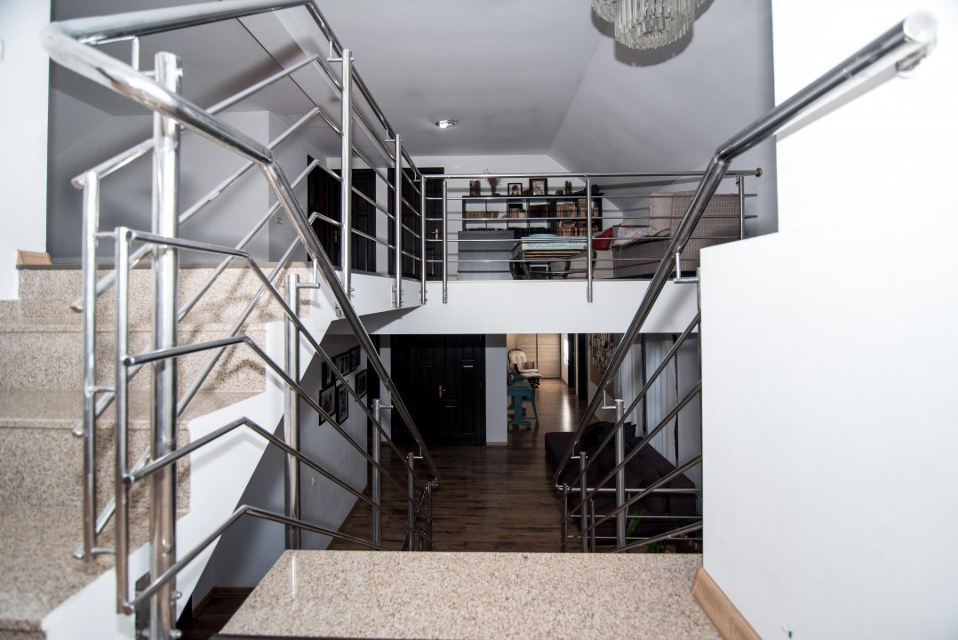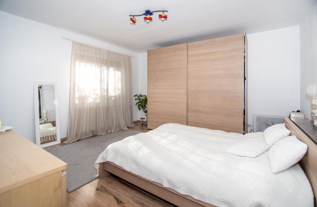 CASA dvs de vis sau AFACEREA DUMNEAVOASTRA de succes Aceasta frumoasa si generoasa casa cu o suprafata de 440 mp utili si 1150 mp teren poate sa devina casa dvs de vis sau afacerea dvs de succes fiind pretabila pentru: pensiune, gradinita, after - school, camin seniori, centru medical, sediu firma - birouri. Cu o curte luminata, spatioasa si amenajata cu alei largi delimtate de frumoasele plante de tuia, magnolii si ciresi japonezi, aceasta superba vila va invita sa patrundeti in interior, prin usa din lemn masiv Foresta, sa va bucurati de intreg confortul pe care il ofera spatiile deosebit de generoase, decorate modern, cu privire de designer si buget generos, cu tamplarie din lemn masiv, cu incalzire prin pardoseala la parter si un loc perfect pentru petrecerile cu familia si prietenii. Compartimentarea interioara: - PARTER: living/lounge spatios cu bucatarie open - space, dinning, semineu, o camera deschisa, baie, iar garajul a fost transformat intr-un spatiu -bucatarie. - ETAJUL 1: 4 dormitoare dintre care 2 matrimoniale, cu baie proprie, un hol spatios si baie, dressing. - MANSARDA: 2 dormitoare, baie si spatiu open space generos, o zona ideala de relaxare, sala de sport sau loc de joaca pentru copii. Casa se vinde mobilata și utilata, dispune de centrala termica, iar la parter de incalzire prin pardoseala, ferestre din PVC cu geam termopan si beneficiaza de toate utilitatile. Casa este construita in 2009, din caramida porotherm de 37.5, cu termosistem de 5 cm si cu acoperis din tabla profilata Lindab. Dispune de camere video si sistem de alarma. Se poate povesti indelung despre detaliile decorarii si amenajarii acestei minunate case si tot ar mai ramane probabil lucruri nespuse, de aceea va invitam sa o vizionati!