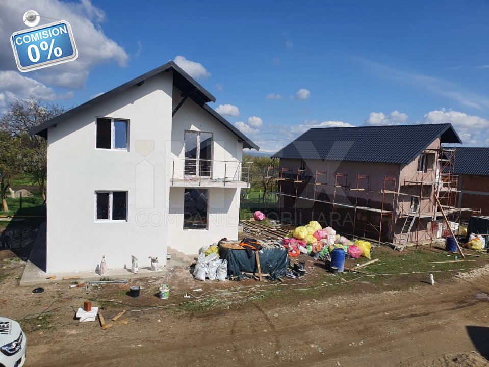 Locuintele sunt construite din caramida de 25 cm, pe o fundatie de beton si dispune de 2 placi. Imobilele sunt izolate exterior cu polistiren de 10 cm grosime, acest aspect mentine casele racoroase vara si calduoase iarna. Ferestrele sunt din termopan, iar usa de la intrare este antiefractie. Exteriorul caselor este tencuit cu vopsea decorativa in nuante de alb si gri antracit, iar acoperisul este in stil clasic, in 2/4 ape. Fiecare locuinta are o suprafata utila de 118 mp, iar terenul aferent fiecarei locuinte este de 300 mp. Casa se preda finisata la cheie, cu baile complet echipate si utilate, gresie si parchet, usi si ferestere, centrala proprie. Casele sunt compartimentate astfel : Parter: - living cu bucatarie cu iesire in terasa - zona de dining - grup sanitar (cu cabina de dus) - terasa amenajata si acoperita Etaj: - trei dormitoare - 1 grup sanitar cu cada - balcon - hol spatios Va asteptam la vizionare! La achiziţionarea imobilului cu credit Prima Casă/imobiliar/ipotecar, primiţi asistentă la realizarea dosarului bancar. Pentru mai multe detalii despre această proprietate sau despre alte oferte similare în zonă, puteţi contacta biroul de vânzări. 0% comision | DA! Nu percepem comision la cumpărarea acestei proprietăţi!